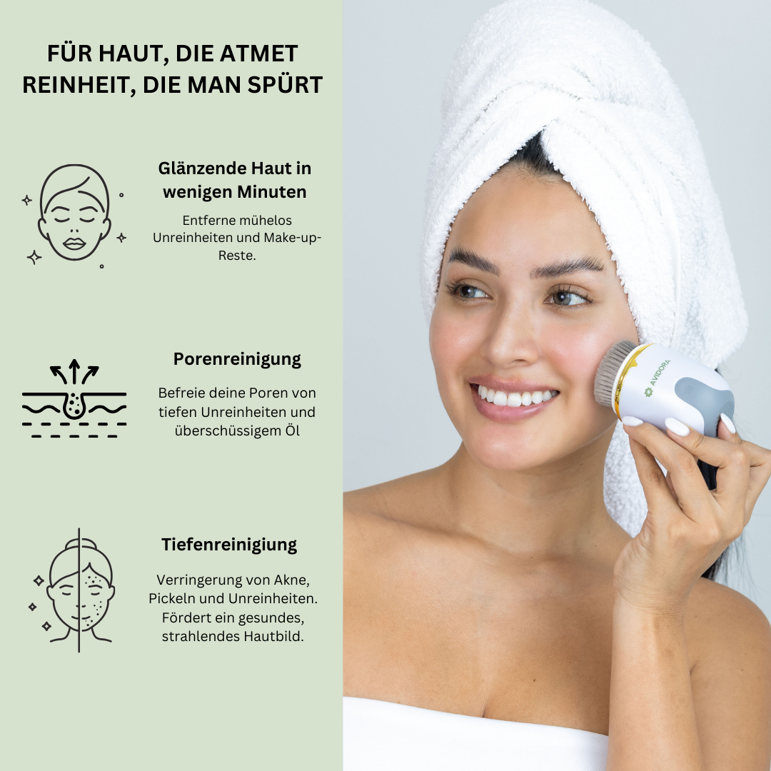 Dann ist unsere 3in1 Facial Brush genau das Richtige für dich! Dank innovativer Technologie und tiefgründiger Reinigung lassen sich bereits nach der ersten Anwendung spürbare Ergebnisse feststellen - Versprochen!