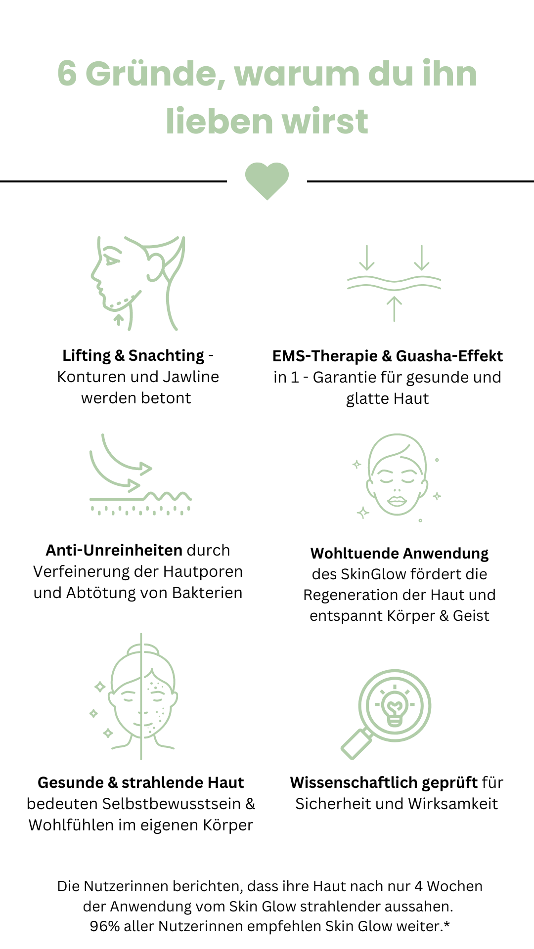 Der Skin Glow ist mehr als nur ein Schönheitswerkzeug: es ist ein vollwertiges Hautpflegesystem, das dir hilft, das Beste aus deiner Haut herauszuholen.